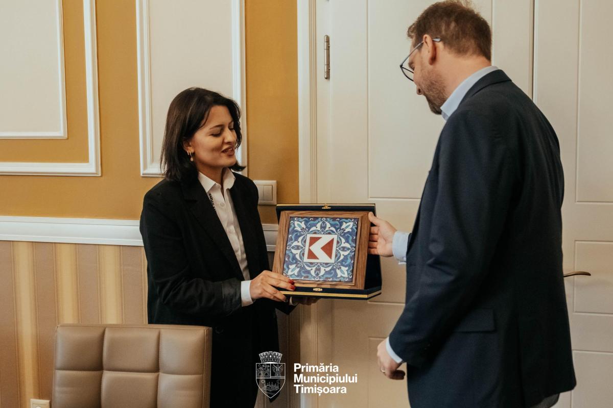 Primarul Dominic Fritz și Hande Nur Kirişoğlu, Regional Sales Manager al companiei KARSAN OTOMOTIV SANAYI VE TICARET A.Ş., au semnat contractul pentru 30 de autobuze electrice de mici dimensiuni.