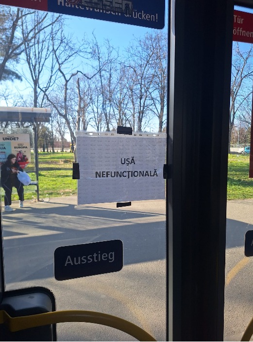 Imaginile surprinse de călători par desprinse dintr-un documentar despre zone subdezvoltate, nu dintr-o comună de top a județului Timiș: uși defecte, mânere legate cu sârmă ruginită, bucăți din plafon s-au desprins, lăsând la vedere mănunchiuri de fire electrice care atârnă deasupra capetelor oamenilor, lipsa accesibilității, persoanele cu dizabilități sunt complet ignorate, autobuzele nefiind dotate cu rampe.
