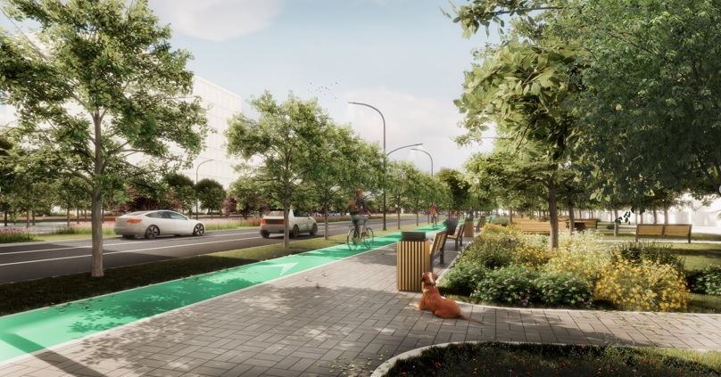 Planul prevede benzi dedicate transportului public, piste pentru biciclete, trotuare noi, spații verzi, precum și o infrastructură subterană modernizată – rețele de apă, canalizare pluvială, cabluri electrice și de telecomunicații.