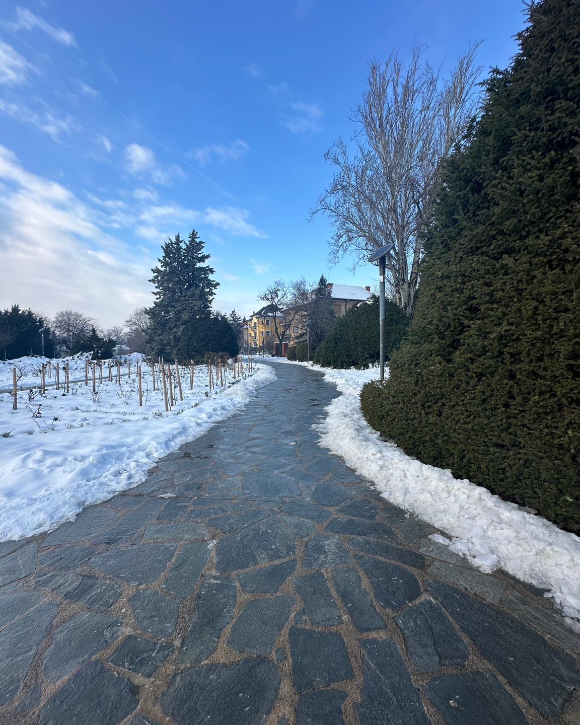 În Parcul Rozelor, pe lângă degajarea aleilor, arborii și arbuștii încărcați cu zăpadă au fost scuturați pentru a preveni ruperea crengilor și afectarea vegetației.