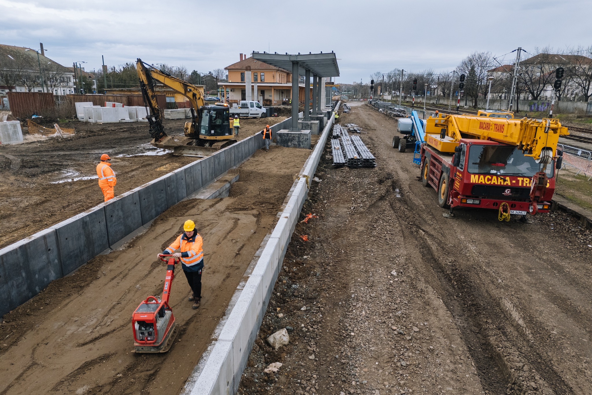 „Proiectul de modernizare a infrastructurii feroviare pe Lotul 3 Timișoara Est – Ronaț Triaj, continuă cu o serie de lucrări între stațiile Timișoara Est – Ronaț Triaj, printre care amintim: lucrări de zidărie și beton armat la rampa de încărcare-descărcare și Magazia de Mărfuri Timișoara Est; lucrări la peroanele aferente Linia 1-2 și pasarela peroane Timișoara Est; lucrări la canalele de revizie linia 8T și 9T, precum și la Pasarela Depou stația Timișoara Nord; lucrări la Clădire de Mentenanță și Parcare Supraterană stația Timișoara Nord; lucrări peroane stația Ronaț Triaj; lucrări montare cadru șină-traverse stația Ronaț Triaj Gr.D; lucrări de montare tablier și cuvă la pasajul inferior str. Gheorghe Lazăr”, a transmis instituția.