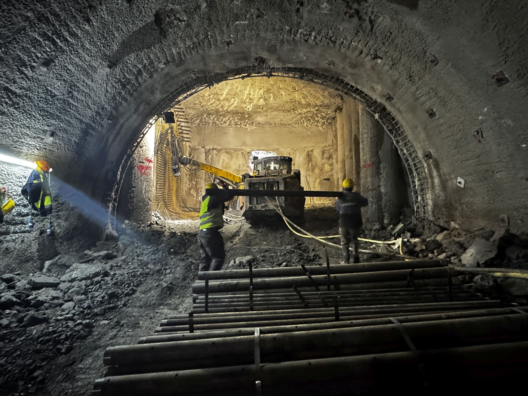 „La Tunelul 1, galeriile sunt finalizate se lucrează la etapele finale de structură. Hidroizolația și drenajul sunt realizate în proporție de peste 90%, iar cămășuiala finală este executată în proporție de aproximativ 90%, în funcție de galerie. La Tunelul 2, lucrările sunt în curs de execuție pe amândouă galeriile, cu excavația realizată în proporție de aproximativ 50 – 70%. În paralel, au început și lucrările structurale, inclusiv fundațiile pentru bolta întoarsă, aflate în stadii diferite de realizare. Pentru străpungerea Tunelului 2, în ambele galerii, sunt organizate 11 fronturi de lucru”, a transmis instituția.