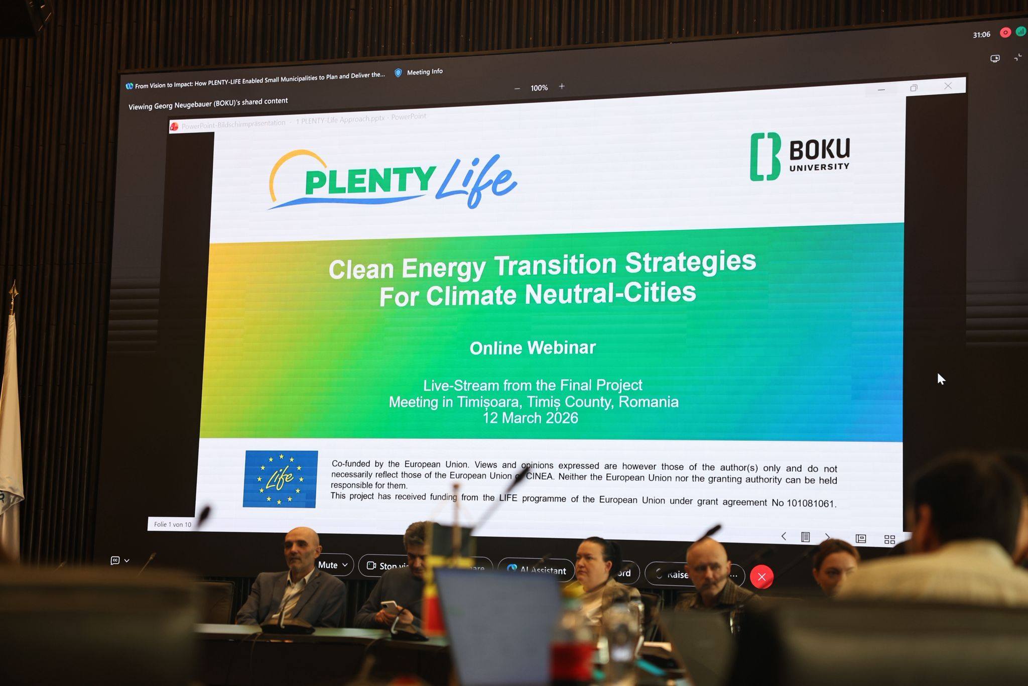 „Experți ai domeniului din Austria, Italia, Belgia și Portugalia au fost implicați în acest proiect, alături de colegi din CJ Timiș. Cu toții au lucrat cot la cot pentru că acest proiect – „ PLENTY-Life” – este unul care poate deschide ușa către finanțări europene mult mai mari pentru: clădiri publice modernizate – școli și spitale care consumă mai puțină energie; transport mai inteligent și mai curat; facturi mai mici prin folosirea energiei regenerabile; orașe mai bine sistematizate, unde mediul este protejat”, a afirmat Alexandru Iovescu, vicepreședintele Consiliului Județean Timiș.