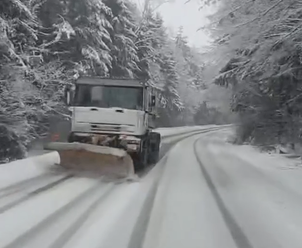 În zonele înalte din județele Caraș-Severin și Hunedoara ninge ca-n povești. Așadar, drumarii intervin cu utilaje și material antiderapant pentru curățarea șoselelor.