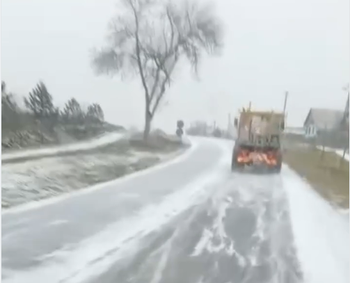 În prima parte a zilei, s-a intervenit cu 21 de autoutilaje și 65 de tone de antiderapant.