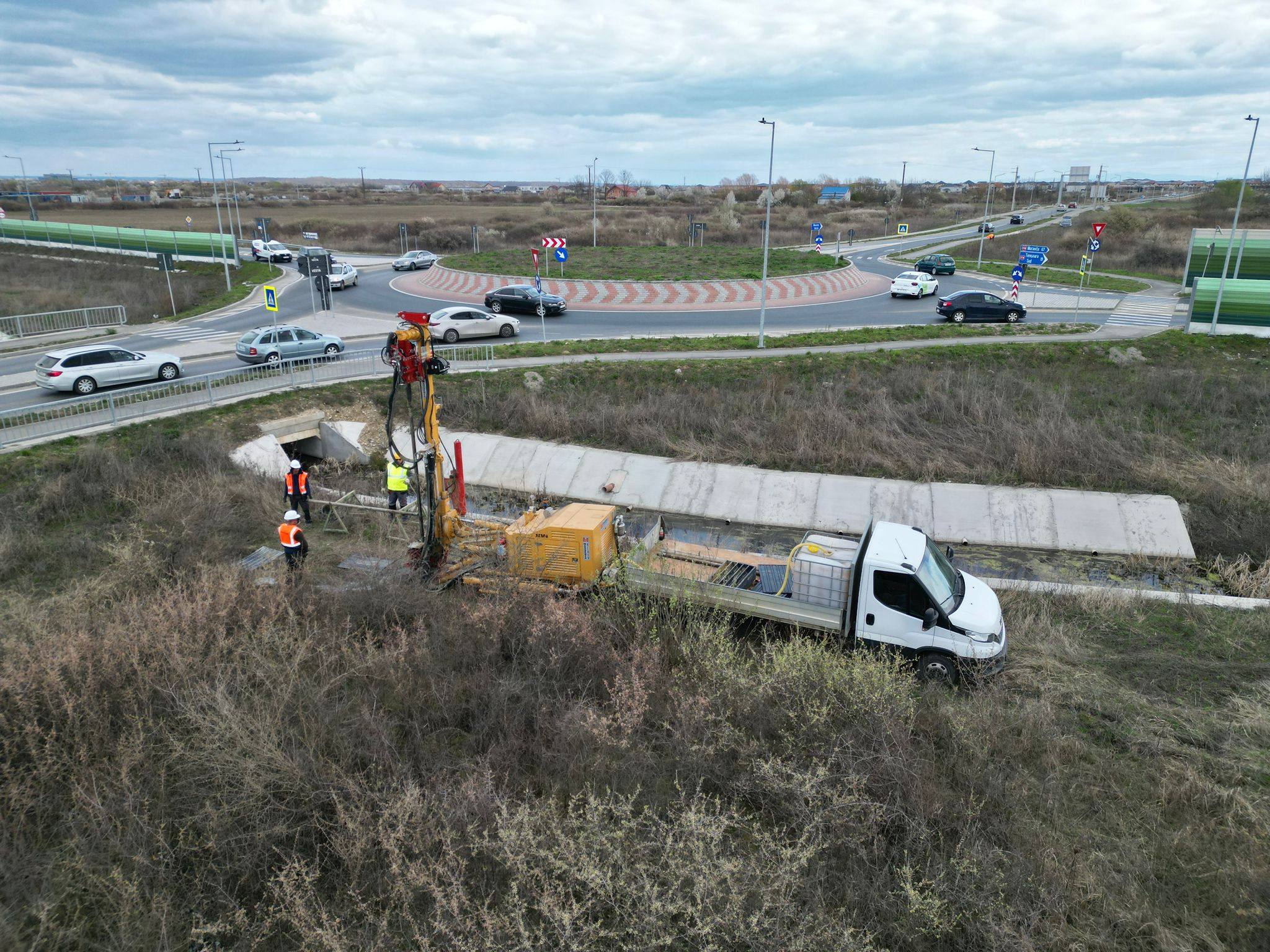 Alfred Simonis, președintele Consiliului Județean Timiș, anunță că au început forajele geotehnice la intersecția Centurii de Sud cu Drumul Boilor. Aici urmează să fie realizat un pasaj cu scopul fluidizării traficului.