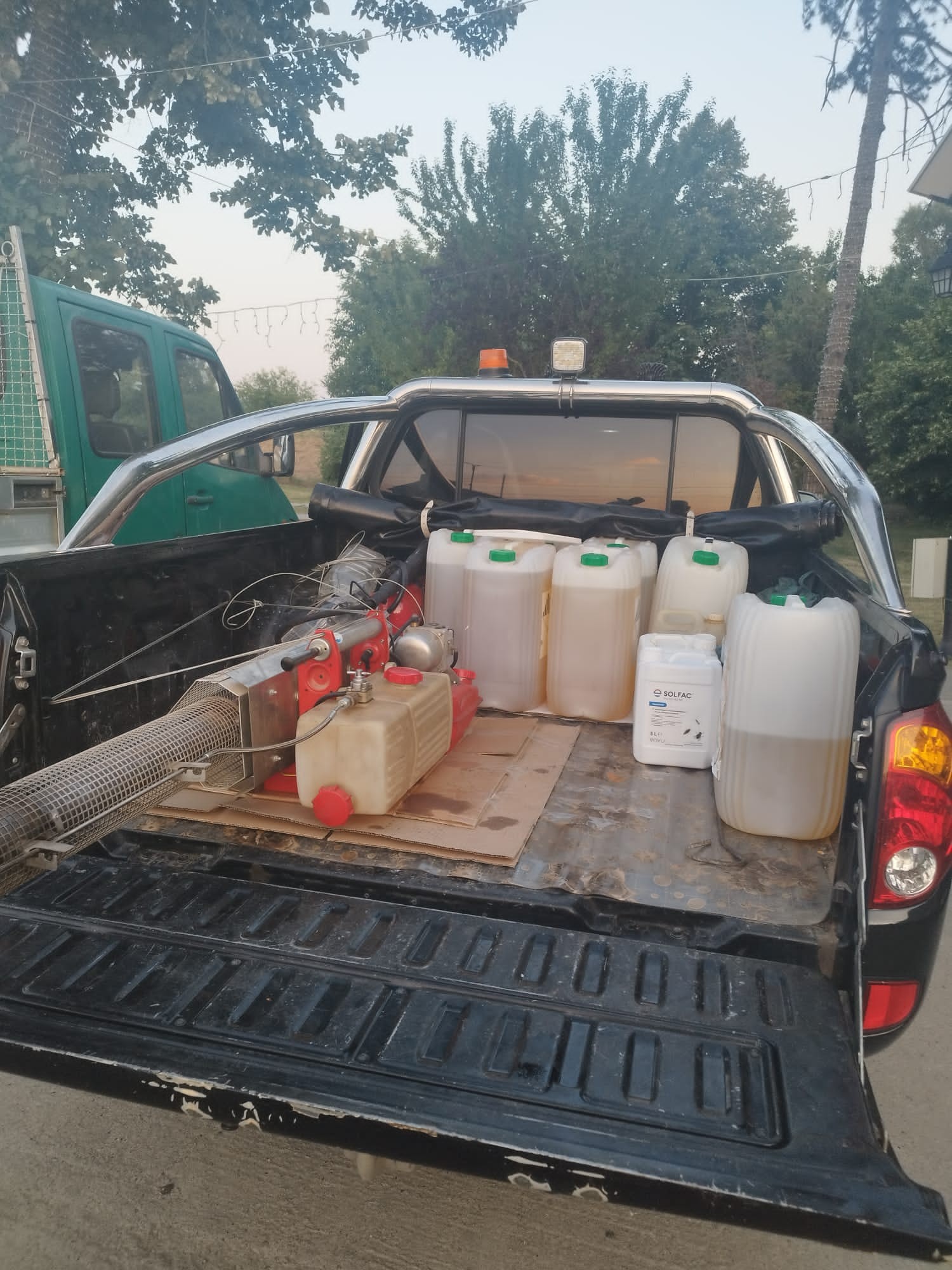 Dezinsecția se realizează din mașini autoutilitare dotate cu generatoare de ceață caldă, câte o mașină în fiecare sat.
