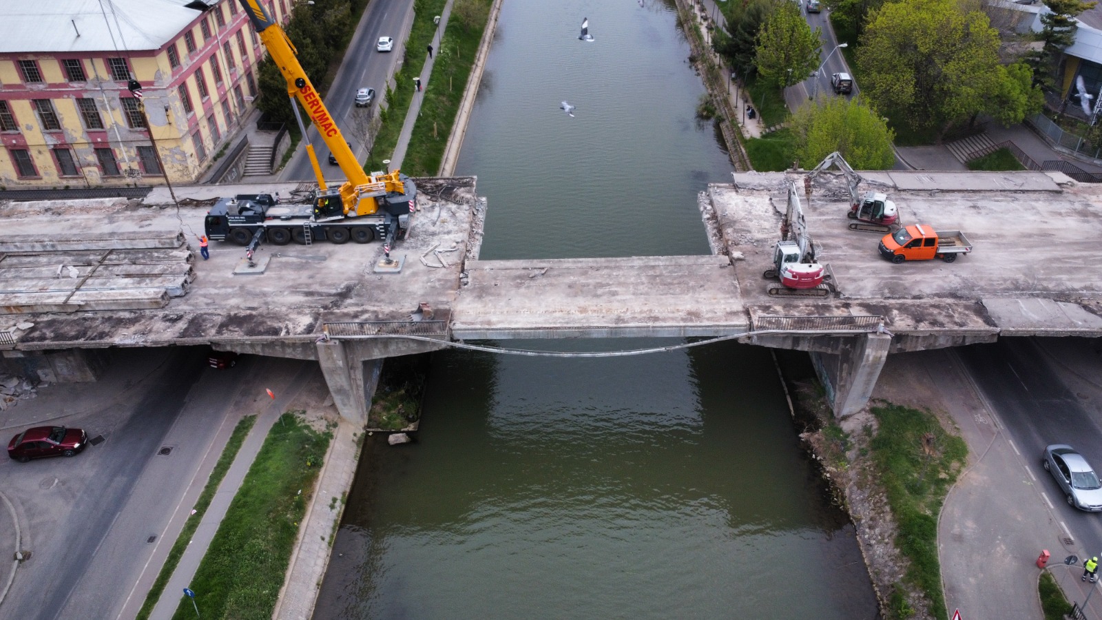 Această etapă a presupus desfacerea grinzilor care supratraversează canalul Bega, o operațiune de precizie esențială pentru pregătirea noii structuri.