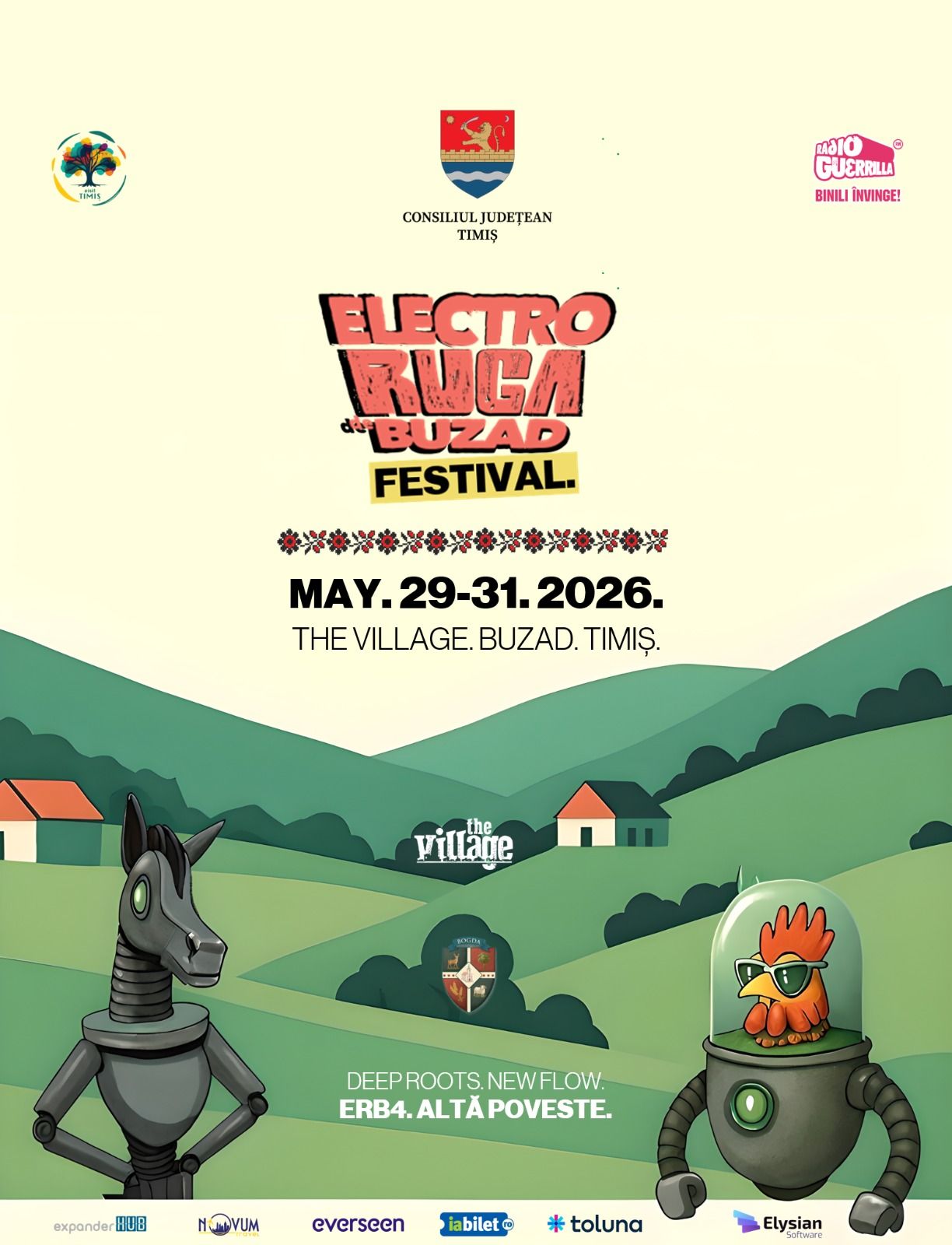 La capitolul experiențe culturale inedite, anul viitor, în perioada 29 – 31 mai, CJ Timiș anunță că va susține Electroruga de Buzad, un proiect mic, real, care îmbină muzica electronică și alternativă cu balkanul, tarafurile și ritmurile locale.