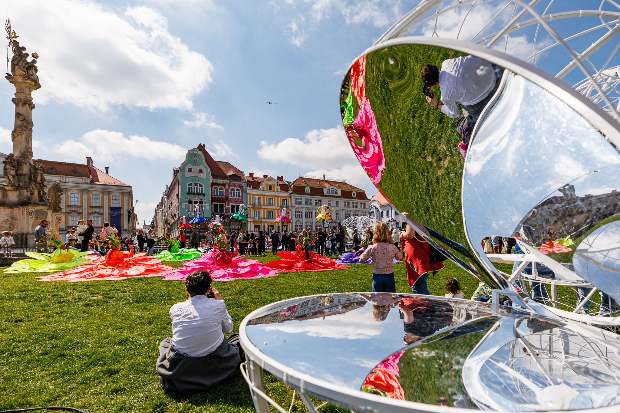 Weekendul care a trecut a adus în centrul Timișoarei o atmosferă vibrantă. Spectacolul stradal itinerant „Flori de Florii”, susținut de artiști internaționali din Franța și Italia, a transformat traseul dintre Piața Victoriei, Piața Libertății și Piața Unirii într-o scenă în aer liber. Reprezentațiile de la prânz și din cursul serii au adunat mii de spectatori, care au însoțit artiștii, într-un parcurs vizual spectaculos, plin de culoare, mișcare și energie.