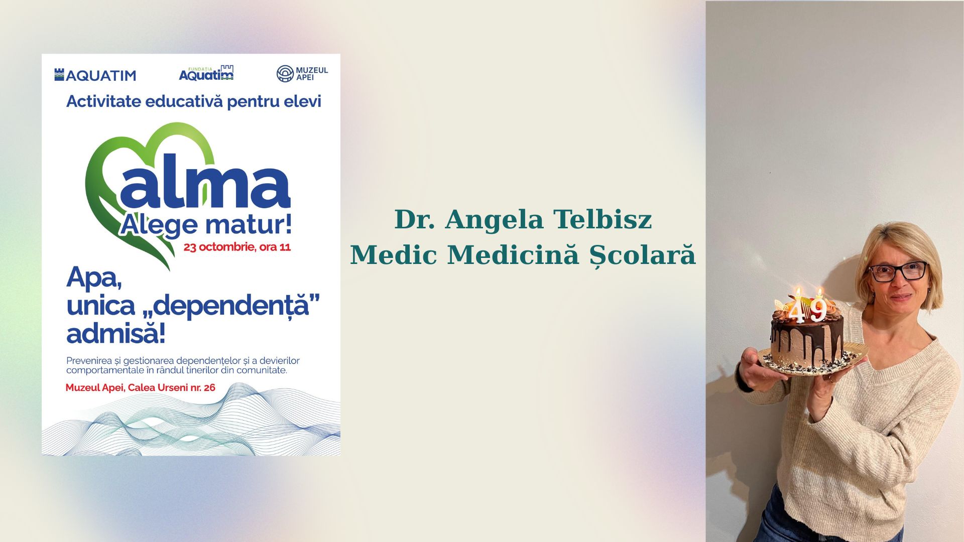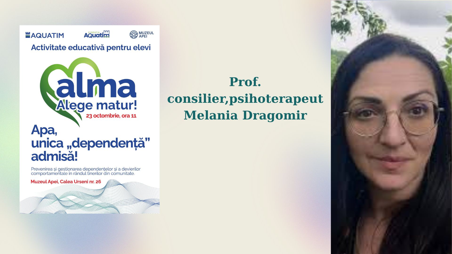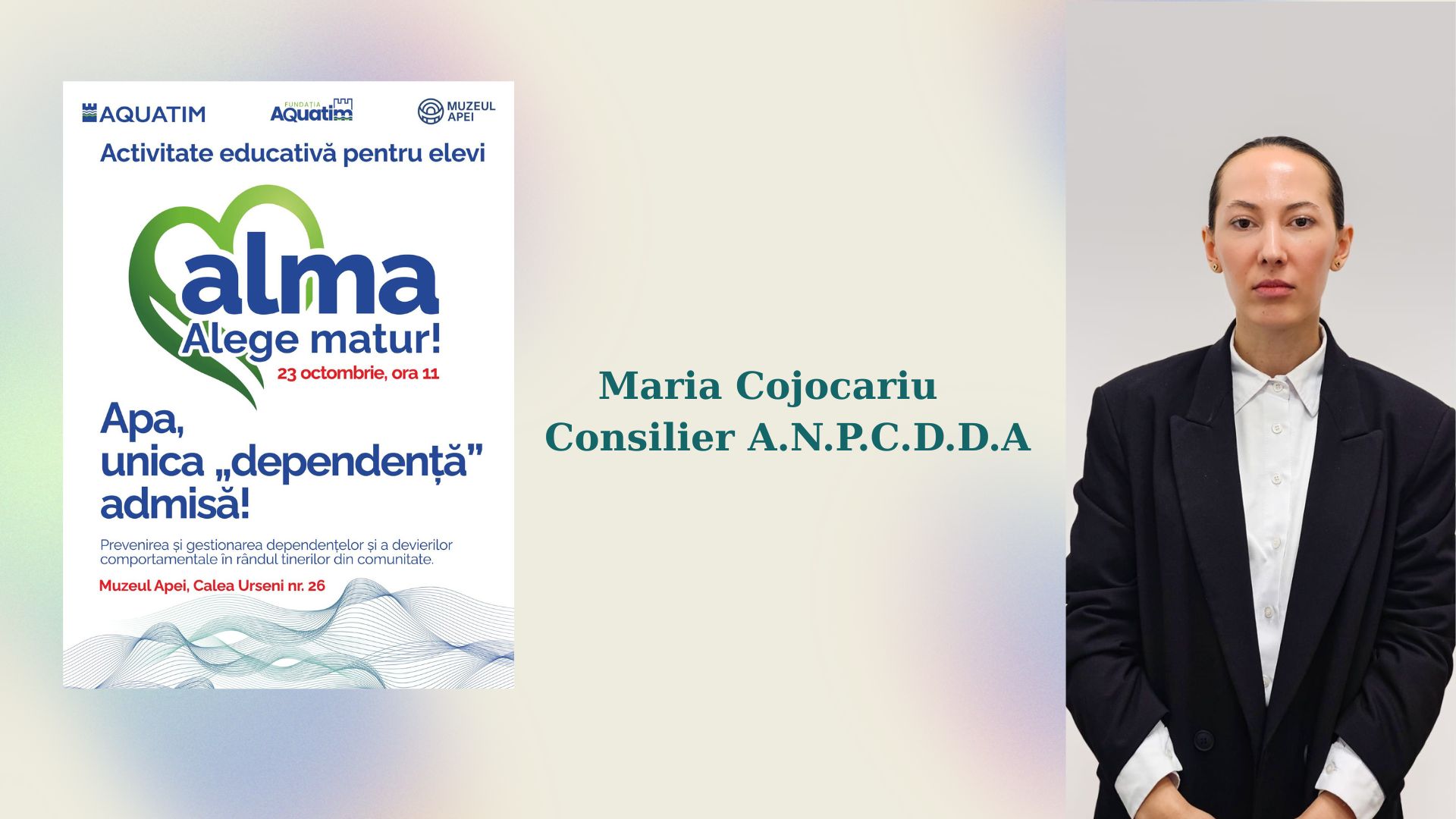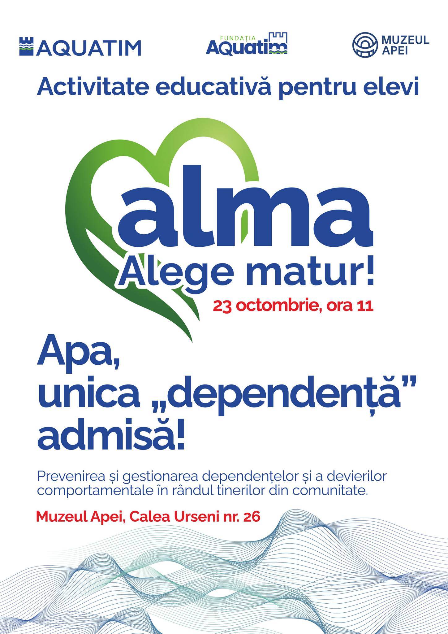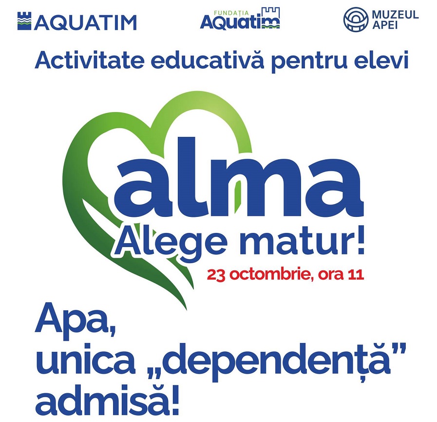 Joi, 23 octombrie, la Muzeul Apei din Timișoara va avea loc prima ediție a noii activități educative organizate de compania Aquatim în parteneriat cu Fundația Aquatim, intitulată ALMA. Acronimul vine de la „ALege MAtur” iar ideea campaniei vizează o temă complexă și fierbinte: prevenirea/gestionarea dependențelor și a devierilor comportamentale în rândul tinerilor din comunitate.
