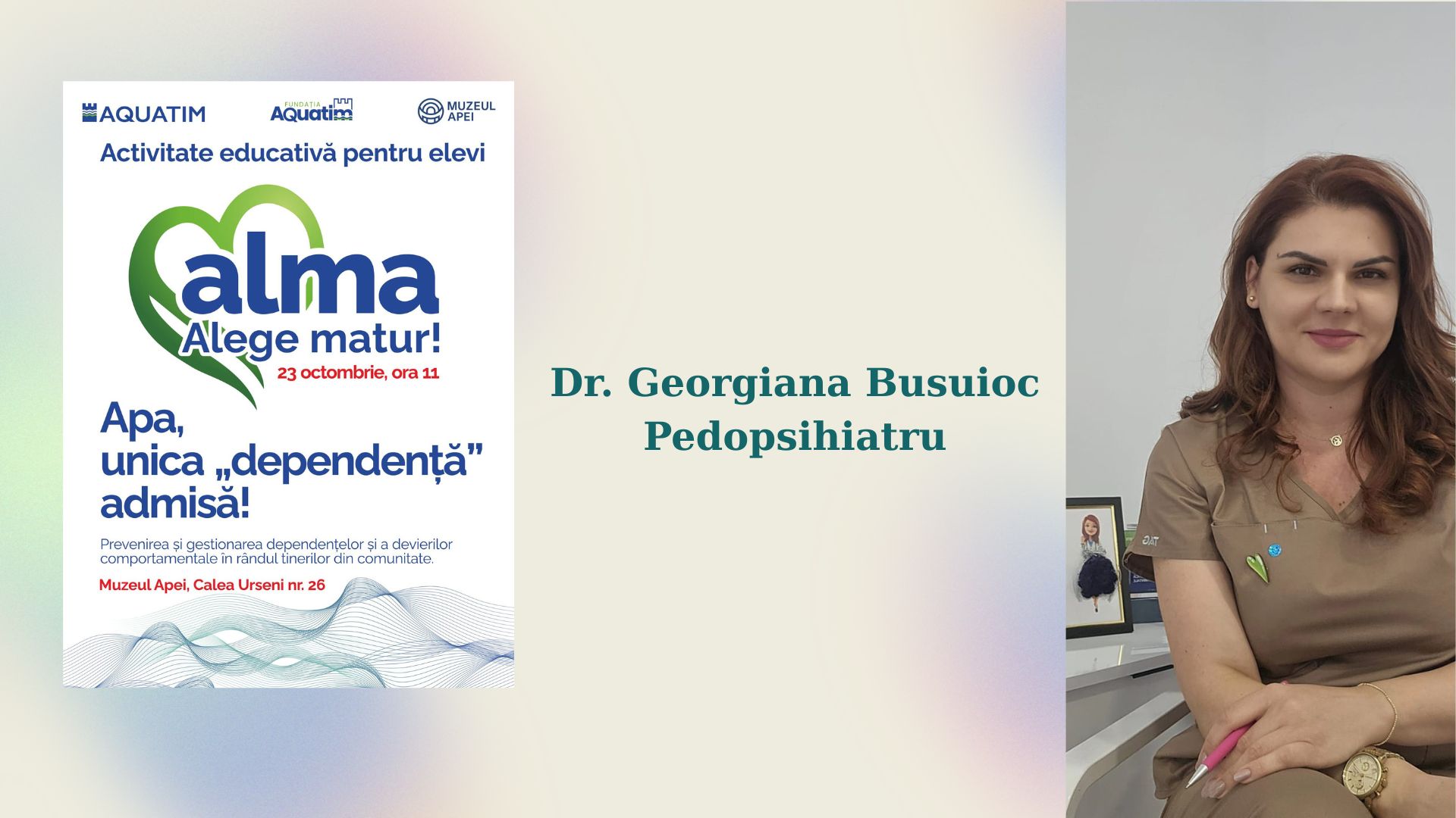 „Invitații primei ediții ALMA sunt extraordinari, în fapt, extraordinare! În fața noastră, dar mai ales a copiilor prezenți la activitate, vin specialiste desăvârșite în domeniile în care își desfășoară activitatea, din București și Timișoara”, a transmis Aquatim.