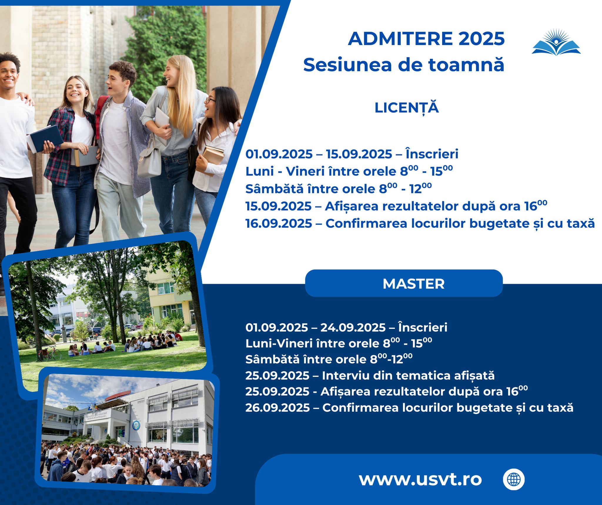 USVT te așteaptă în sesiunea de toamnă cu locuri disponibile la licență și masterat