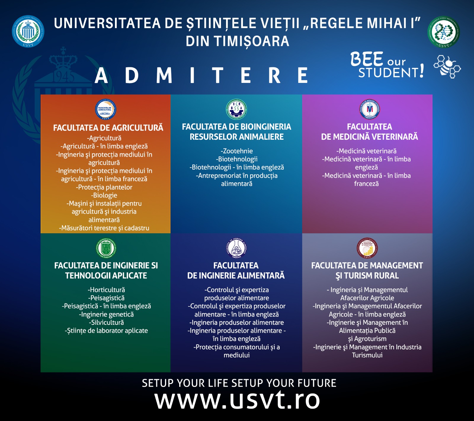 „Alege viitorul care ți se potrivește la Universitatea de Științele Vieții “Regele Mihai I” din Timișoara! Investim în viitorul generațiilor viitoare prin educație modernă și programe academice adaptate cerințelor pieței muncii”, a informat USVT.