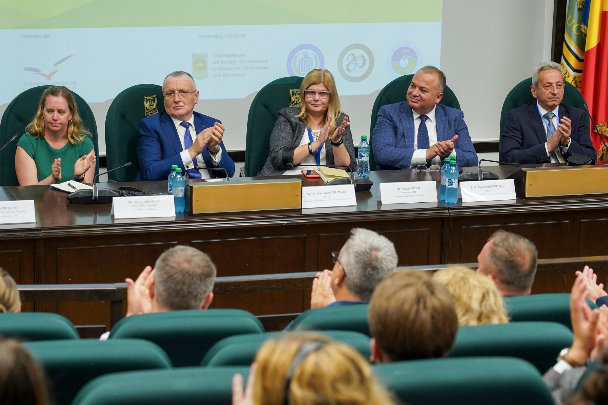 La eveniment au fost prezenți reprezentanții celor trei universități, Prof. univ. dr. Cornel Cătoi, rector USAMV Cluj-Napoca, Prof. univ. dr. Cosmin-Alin Popescu – rector Universitatea de Științele Vieții “Regele Mihai I” din Timișoara, Prof. univ. dr. Sorin Cîmpeanu – rector Universitatea De Stiinte Agronomice Si Medicina Veterinara Bucuresti, Roxana Vitan – președinta Romanian-American Foundation, Alys L. Spensley – Consilier pentru Afaceri Publice, Ambasada SUA, Todd Applegate și Abigail Borron (University of Georgia, SUA), Adrian Pintea – Secretar de stat în cadrul Ministerul Agriculturii și Dezvoltării Rurale, Burghilă Daniela – Director General Învățământ Superior în cadrul Ministerul Educației – România, Ioan Jelev – Academia De Stiinte Agricole SI Silvice „Gheorghe Ionescu-Sisesti”.