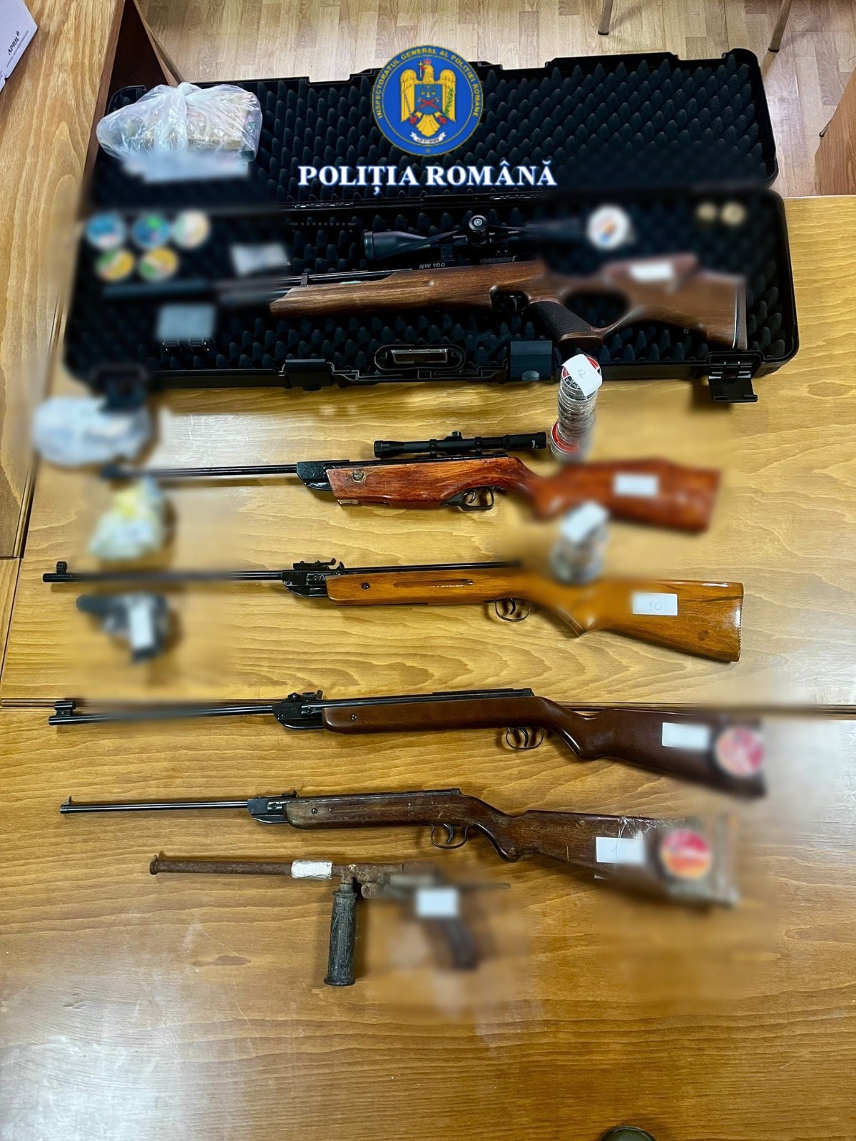 În urma perchezițiilor, la cele 15 imobile, au fost descoperite și indisponibilizate șase arme lungi neletale, două arme scurte neletale, peste șapte mii de bucăți de muniție neletală și peste șase sute de articole pirotehnice din categoria P1, toate aparținând categoriei supuse autorizării și deținute fără drept, precum și alte mijloace de probă.