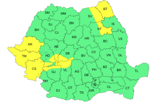 „Pe parcursul zilei de duminică (14 septembrie), în județele Caraș-Severin, Timiș, Arad, Botoșani, zona joasă a județelor Suceava și Neamț, precum și în jumătatea de vest a Carpaților Meridionali, vântul va avea intensificări cu viteze de 50…70 km/h, iar la altitudini mari, în general de peste 1700 m, rafalele vor fi de 90…100 km/h”, a informat ANM.