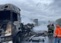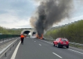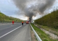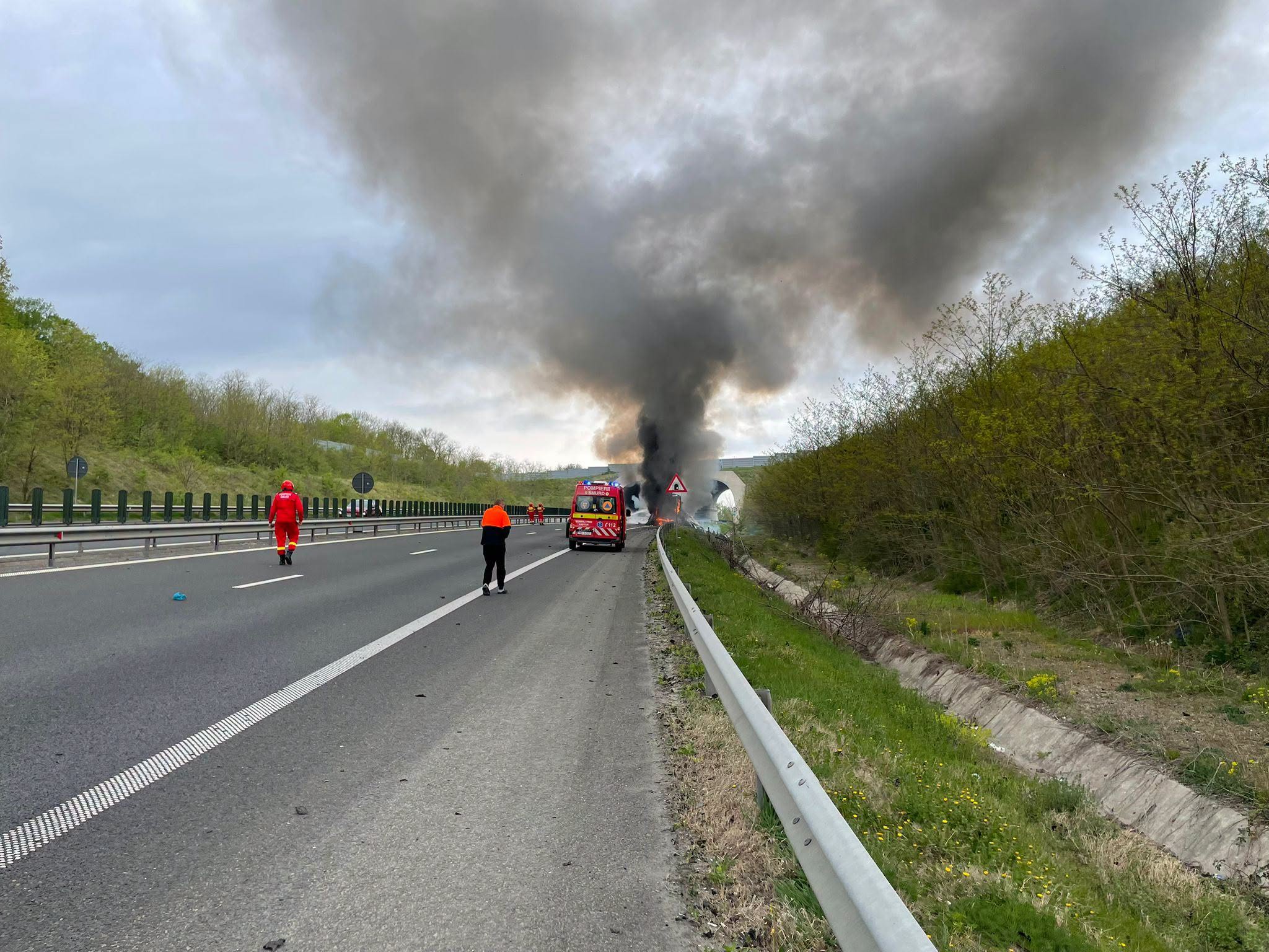 Un camion a ars ca o torță, luni, pe autostrada A1, pe sensul Deva – Timișoara.