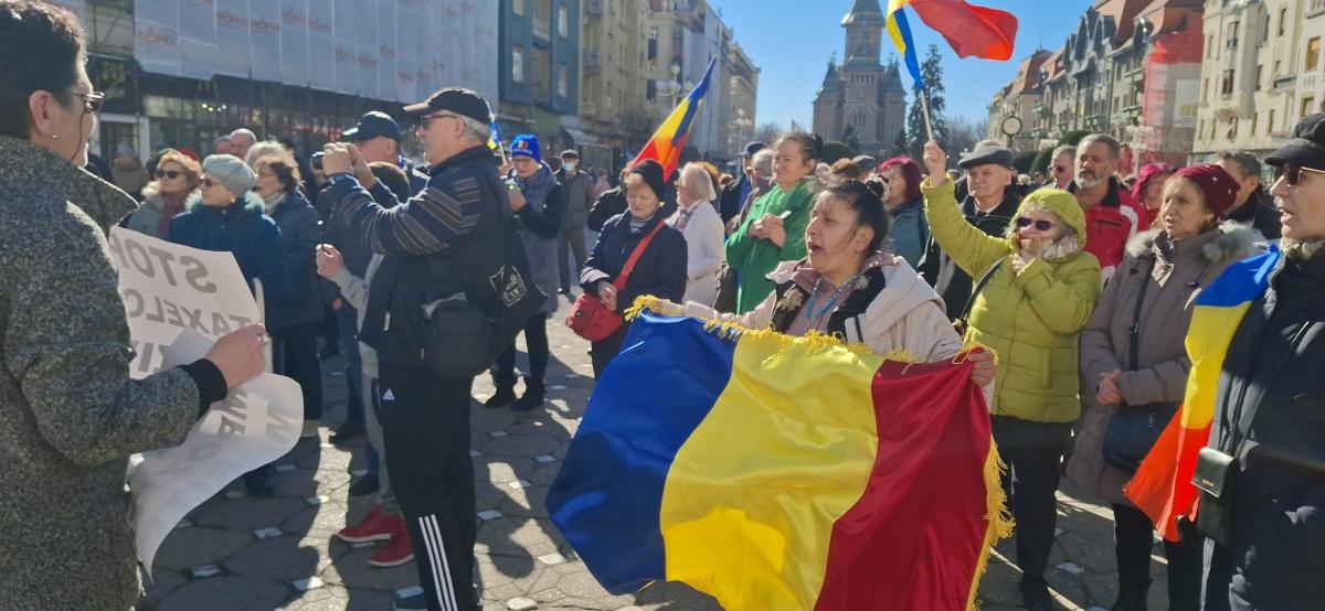 Nemulțumiți de deciziile economice care le afectează nivelul de trai,câteva zeci de protestatari din centrul Timișoarei au cerut demisia Executivului. Astfel de acțiuni au fost organizate în mai multe orașe din țară.
