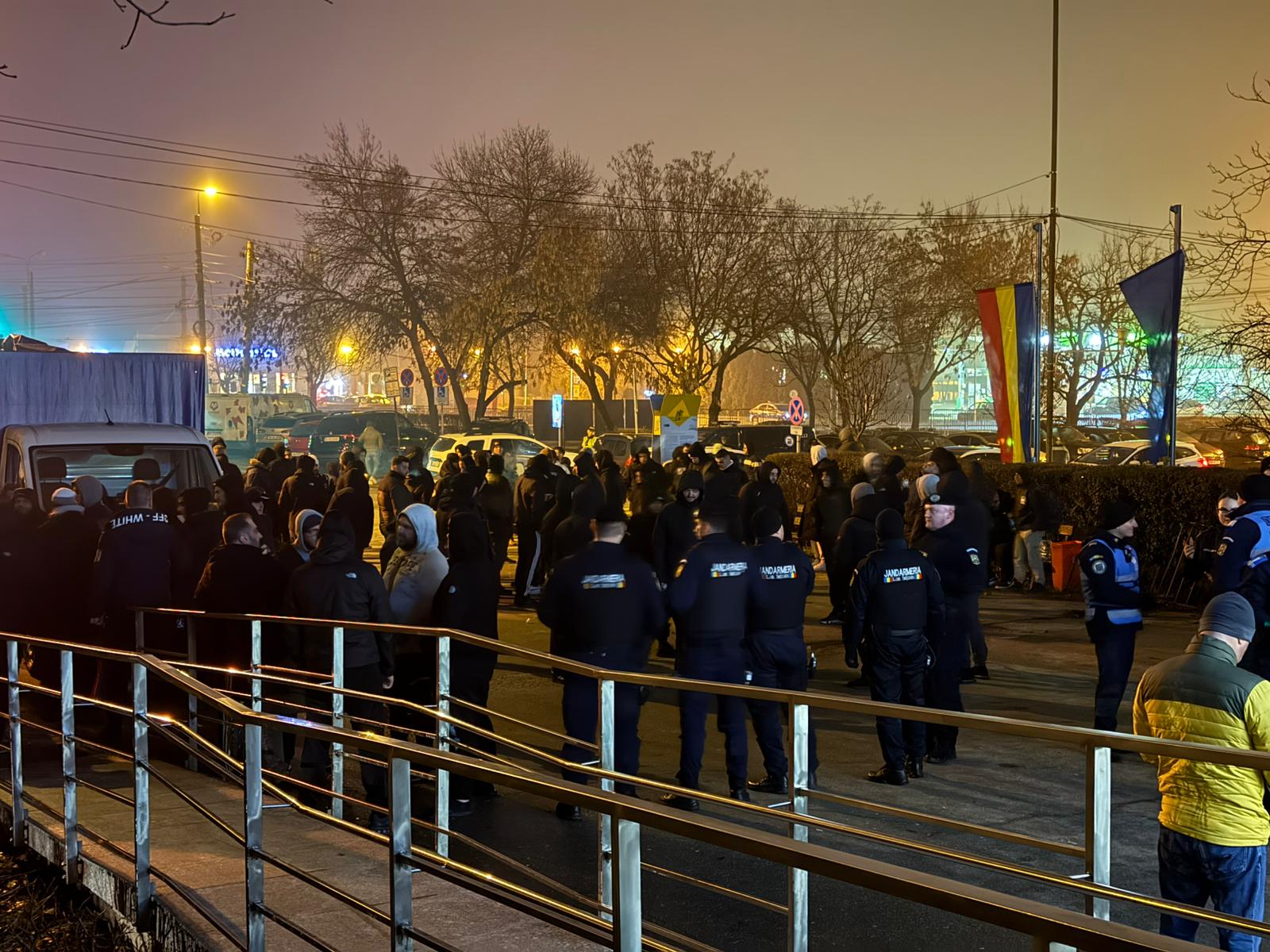 Când au ajuns în fața unității medicale din Timișoara, au primit ceai cald și sandwichuri de la jandarmii timișeni. Au făcut zid în fața spitalului, dar în liniște, nu au scandat nimic.