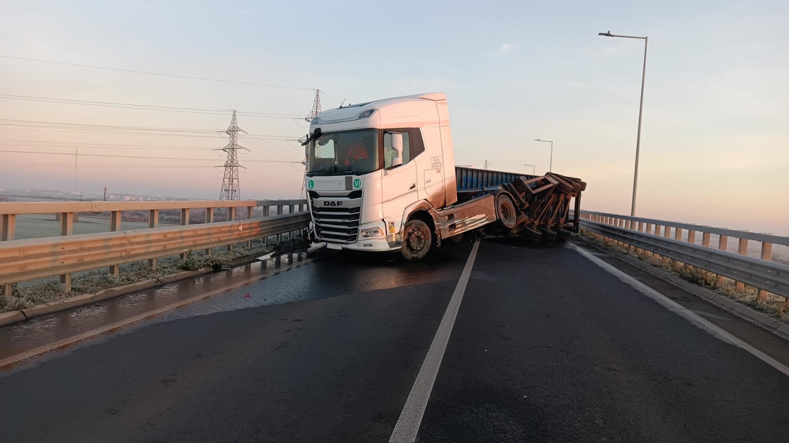 Șoferii sunt sfătuiți să evite centura de sud a Timișoarei, marți. În zona Rudicica, traficul este blocat din cauza unui camion care s-a răsturnat pe carosabil.