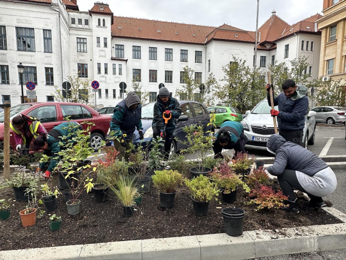Tot în această perioadă, au fost plantate plante perene în zona Primăriei Timișoara și pe strada Daliei, iar în Piața Romanilor s-au refăcut scafele la arbori și s-au plivit arbuștii.