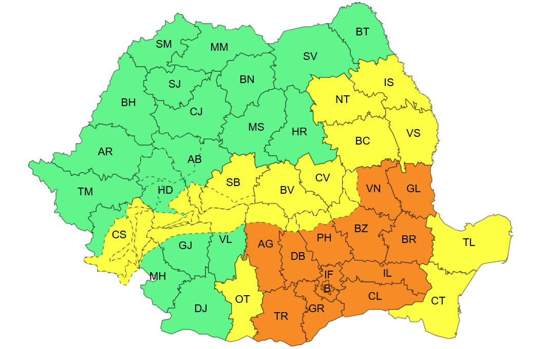 Alerta meteo va intra în vigoare marți seara, la ora 22.00, și va expira miercuri, la ora 12.00.