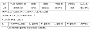 Rezultat final concurs „asistent medical generalist – chirurgie generală” la Spitalul Orășenesc Deta