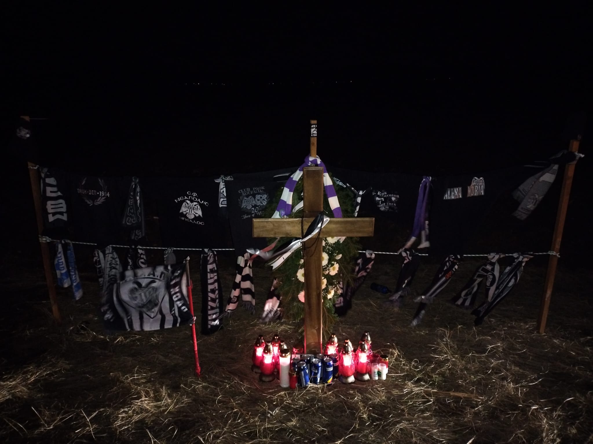 Așadar, a fost amenajat un loc comemorativ, fiind aprinse torțe, depuse coroane și lăsate beri în memoria suporterilor echipei PAOK Salonic.