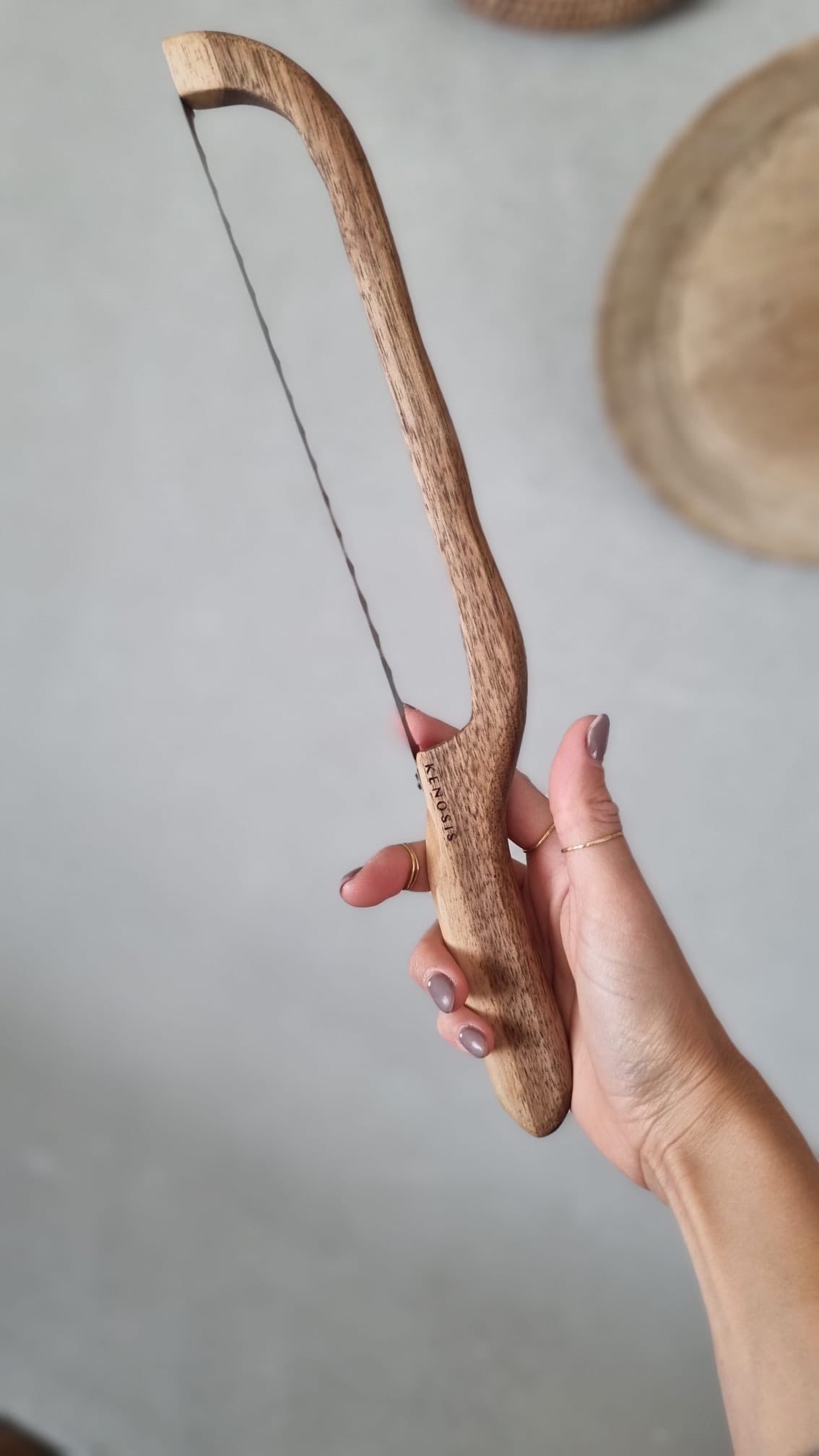 - Bow Knife – Cuțit pentru pâine realizat din nuc românesc, cu lamă din oțel inoxidabil. Taie cu ușurință pâinea, iar mânerele sculptate manual invocă o căldură și un caracter aparte;