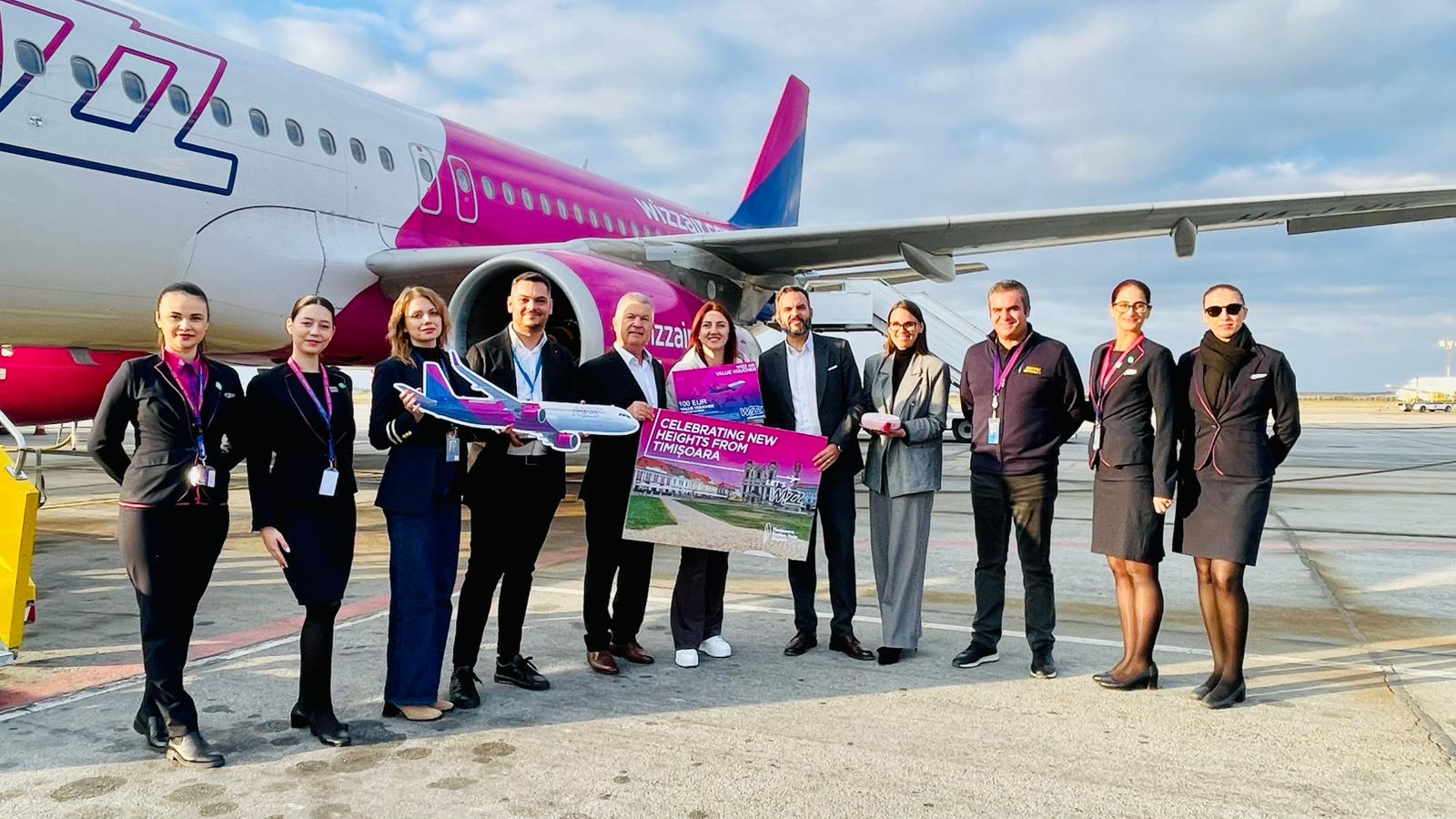 Wizz Air, cea mai mare companie aeriană din România, a întâmpinat luni cea de-a treia aeronavă alocată bazei sale de la Aeroportul Internațional „Traian Vuia” Timișoara, care va deservi cinci rute noi inaugurate în această lună.